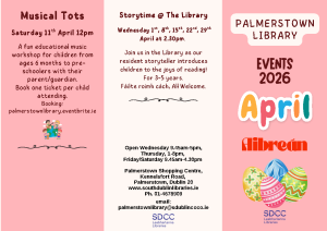 Palmerstown Library Digital Hub | Palmerstown Shopping Centre | Kennelsfort Road, Palmerstown, Dublin D20 VH60 | Tel:+353 1 4678909 | Email: ptowndigihub@sdublincoco.ie | www.southdublinlibraries.ie |