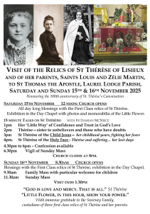 Relics of St Thérèse of Lisieux 15-16 Nov 2025